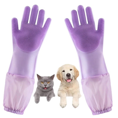 Dog Washing Gloves Pet Grooming Gloves with Soft Brushes Bathing and Massaging for Dogs and Cats Silicone Heat Resistant Cleaning Gloves with High-Density Teeth (Purple)